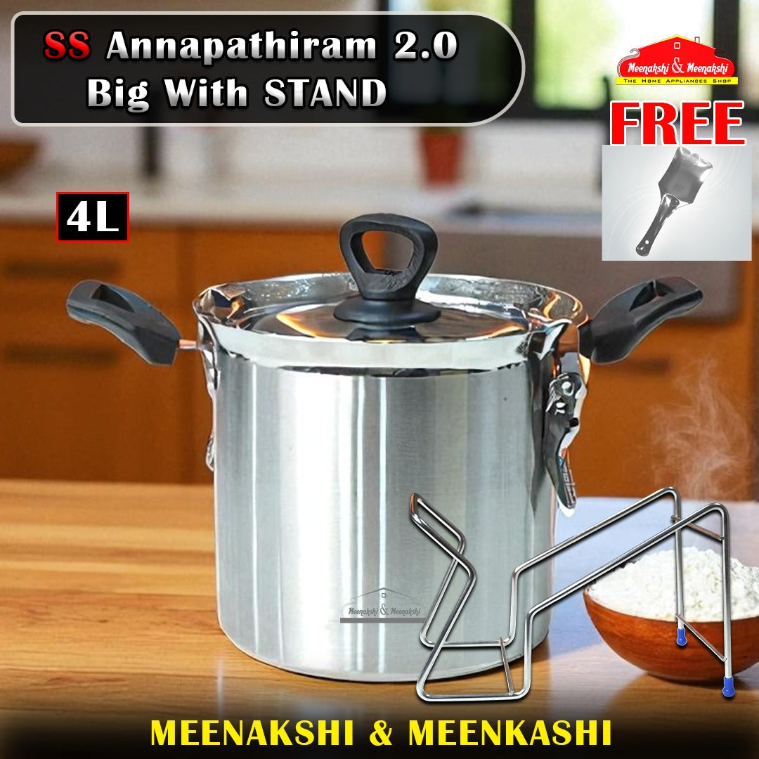 SS Annapathiram 2.0 Big With STAND is a premium stainless steel food storage vessel designed for households that prepare meals in bulk. The enhanced 2.0 version features superior durability and a larger capacity, making it ideal for storing cooked rice, curries, and other prepared dishes. The included stand elevates the vessel for convenient access and improved kitchen organization. Crafted from high-grade stainless steel, it resists corrosion and maintains food freshness. Perfect for families seeking reliable, long-lasting kitchenware that combines functionality with traditional design.